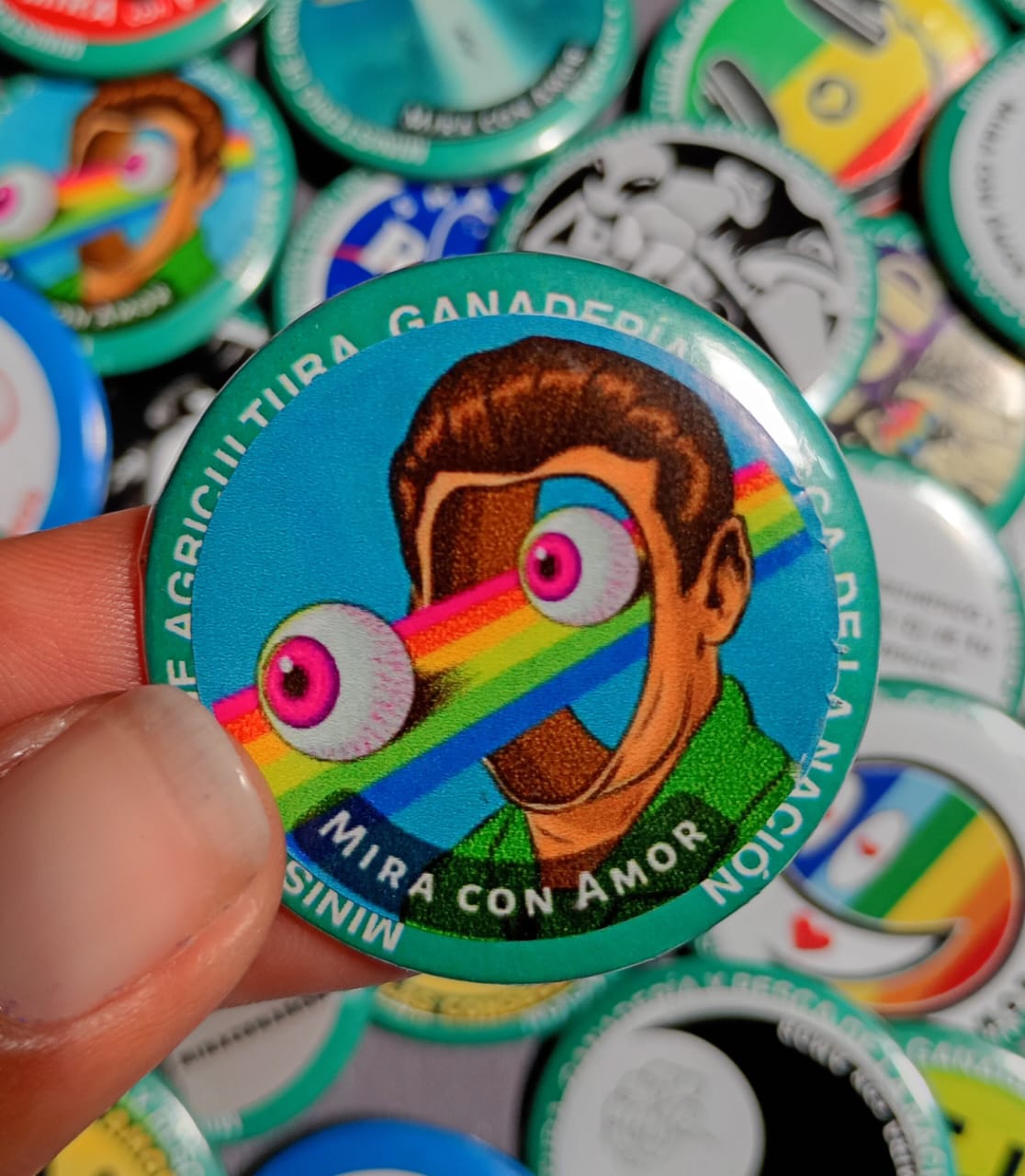 Conscientes y divertidos pines metálicos de 38mm, elaborados a partir de pines reciclados con arte original Mira con Amor, diseñados para crear consciencia sobre la importancia del amor propio!